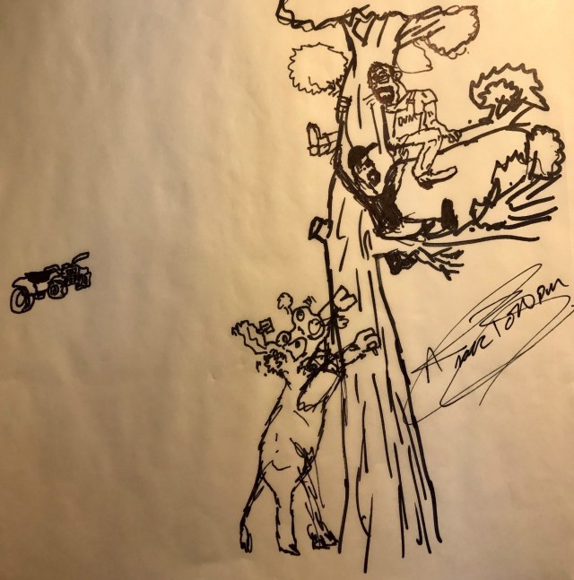 Fortunately, we have cell phones in today’s world, if not for that, Dwane and I would have had to stay in the tree for who knows how long.