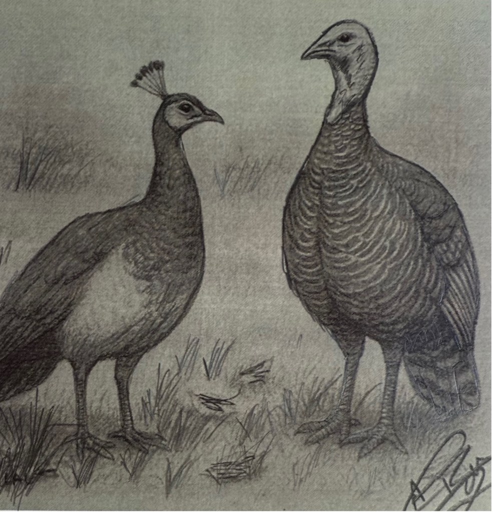 Not turkey, but peafowl—tan-shelled and blessed.
